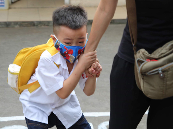 Đi học lại, học sinh khóc nức nở níu tay mẹ không muốn vào lớp