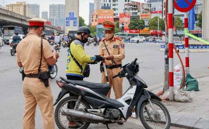 Sáng 3/6, Đội CSGT đường bộ số 7, Phòng CSGT Công an TP Hà Nội lập chốt lưu động để tập trung xử lý vi phạm liên quan đến hành vi đi xe máy lên vỉa hè, đi ngược chiều, vượt đèn đỏ,... tại khu vực ngã tư Khuất Duy Tiến - Nguyễn Trãi (quận Thanh Xuân, Hà Nội).