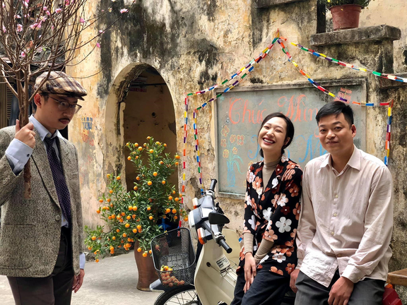 Diễn viên Minh Tít (bên trái) khi tham gia MV "Tết xưa Tết nay".
