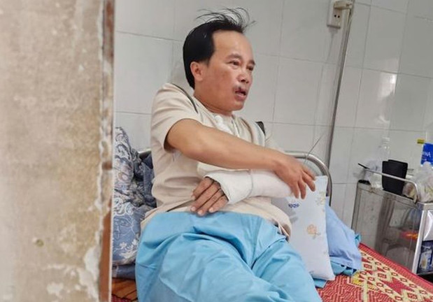 Ông Phan Hoài Nam - Trạm trưởng Trạm bảo vệ rừng (Chi nhánh Xí nghiệp 2, Công ty TNHH MTV Lâm nghiệp Bến Hải) bị đánh phải nhập viện điều trị. (Ảnh: Đỗ Nghĩa)