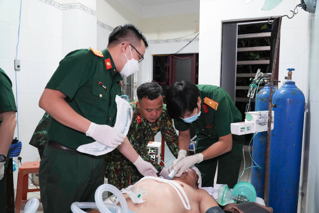 Ngư dân bị đột quỵ được đưa từ đảo Trường Sa về tới Bệnh viện Quân y 175 cấp cứu.