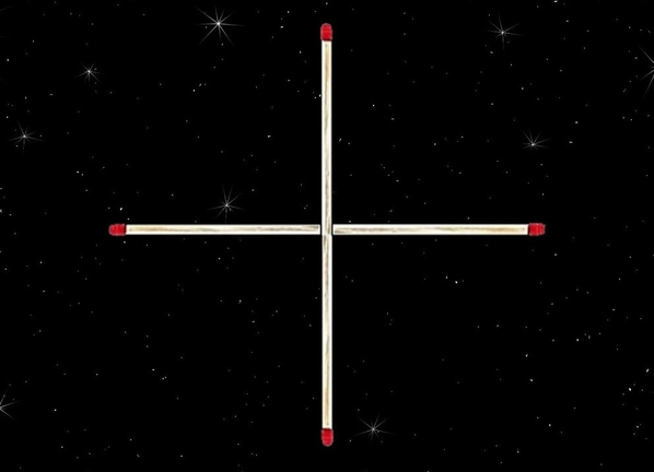 Cho 4 que diêm xếp thành hình dưới đây. Người chơi hãy tìm cách di chuyển một que diêm để tạo thành một hình vuông.