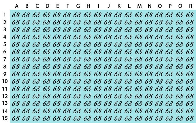 Trong 5 giây bằng sự tinh mắt của bạn hãy thử đoán xem số 98 nằm lẫn ở đâu trong rất nhiều các số 68.