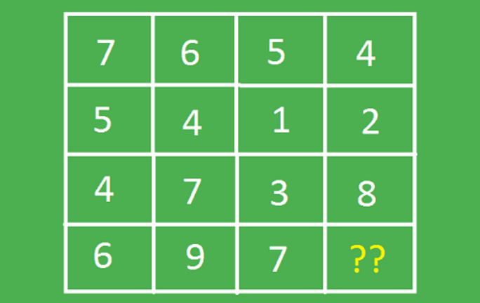 Câu đố Toán học này cho trước các chữ số từ 1- 9 xắp xếp không theo thứ tự trong mỗi ô vuông và yêu cầu bạn hãy tìm ra chữ số ẩn sau dấu hỏi chấm trong 10 giây. Đây sẽ là câu đố khó và hóc búa, nếu là những người thông minh chắc chắn bạn sẽ tìm được ra đáp án chỉ trong vòng 10 giây.