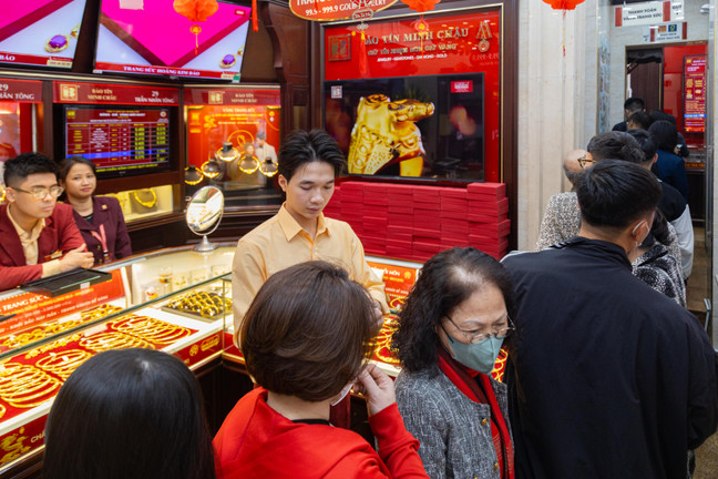 Tại Hà Nội, các cửa hàng vàng tấp nập đón khách từ sau kỳ nghỉ Tết Nguyên đán. Thậm chí có nơi đông khách đến giao dịch ngay trong dịp Tết. "Chúng tôi mở cửa từ mùng 3 đã có khách. Đến mùng 4 bắt đầu đông và trong mùng 5, 6 nhiều lúc bị quá tải", nhân viên một cửa hàng cho biết.
