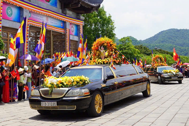 Khoảng 10h, xá lợi Đức Phật Thích Ca Mâu Ni được rước đến chùa Bái Đính (Ninh Bình).