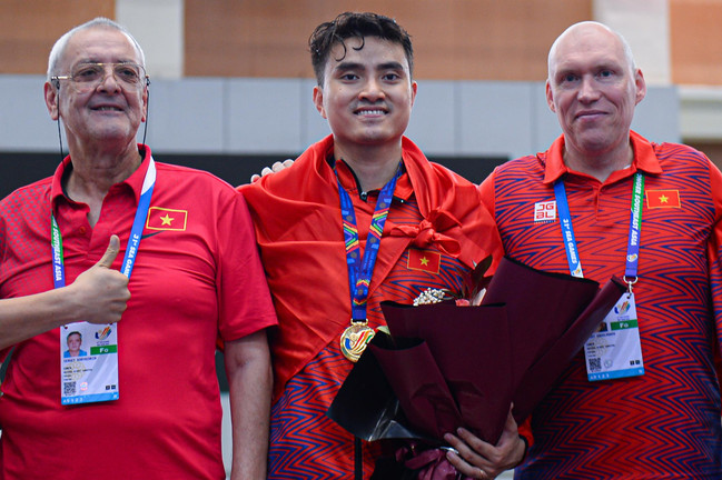 Chiều 13/5, kiếm thủ Vũ Thành An đã bảo vệ thành công tấm HCV SEA Games kiếm chém cá nhân nam sau khi đánh bại đối thủ Thái Lan ở trận chung kết.