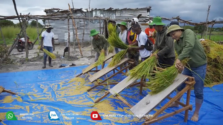 Độc đáo cách đập lúa truyền thống của Việt Nam trên đất Angola