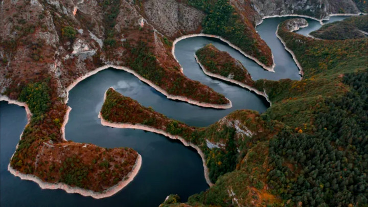 Hẻm núi Uvac ở Serbia có nhiều khúc sông uốn lượn như ma trận, tạo nên vẻ đẹp thiên nhiên kỳ thú.