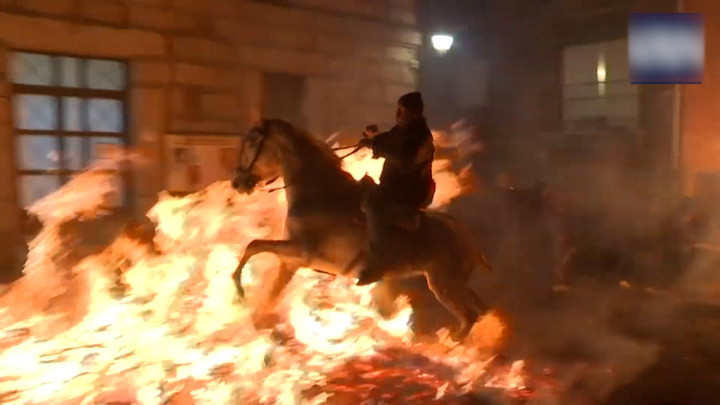 Độc đáo lễ hội cưỡi ngựa phi qua lửa ở Tây Ban Nha