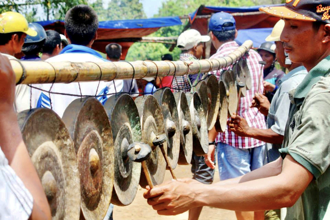 Cồng chiêng là phần không thể thiếu trong lễ Pơ Thi. (Ảnh: Hiền Mai)
