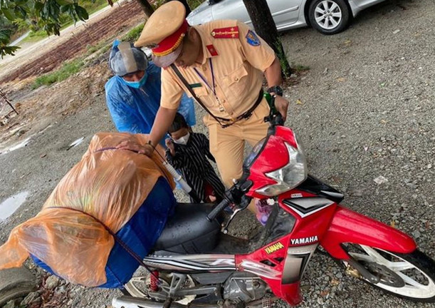 Đội mưa chở con về quê, người đàn ông xúc động khi được CSGT giúp đỡ