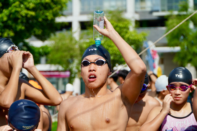 Vận động viên tìm cách giải nhiệt trước khi bước vào phần thi.