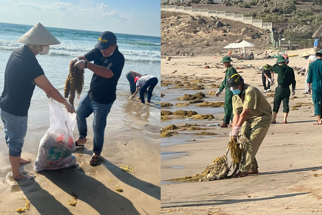 Chủ trì có UBND phường Mũi Né phối hợp với Đồn Biên phòng Mũi Né và 300 người là các hội, đoàn thể, đoàn viên thanh niên, cán bộ công chức, người dân, các cơ sở kinh doanh du lịch tại khu vực có dầu tràn đã vón cục trôi vào bờ; thực hiện thu gom toàn bộ dầu vón cục lẫn cát, rác thải, vật dụng có dính dầu.