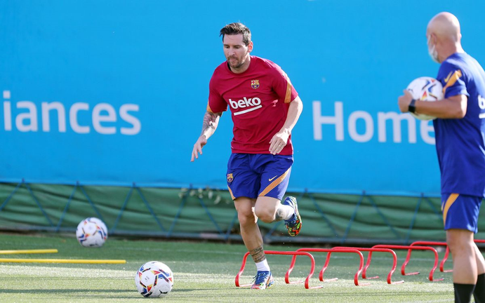 Messi phải tập luyện riêng trong vài ngày theo quy định của ban tổ chức La Liga. Trước đó, Leo đã trải qua xét nghiệm PCR tại nhà và có kết quả âm tính với SARS-CoV-2. (Ảnh: Barcelona).