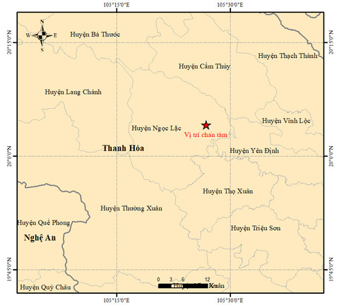 Trận động đất 4.1 độ richter vừa xảy ra tại khu vực huyện Ngọc Lặc (tỉnh Thanh Hóa).