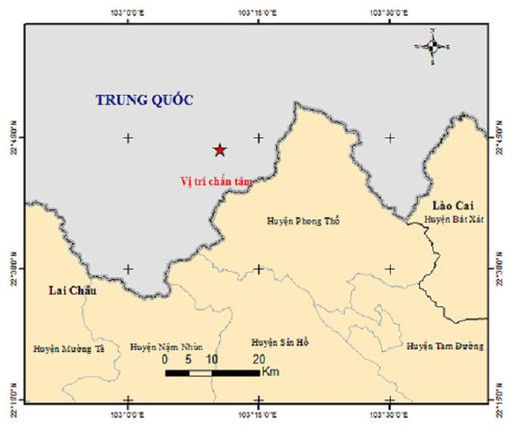 Tiếp đến, 3 giờ 18 phút 54 giây, một trận động đất có độ lớn 2.8 độ Richter xảy ra tại vị trí có tọa độ 22.728 độ vĩ Bắc, 103.176 độ kinh Đông, độ sâu chấn tiêu khoảng 8.1 km. Động đất xảy ra tại khu vực tỉnh Vân Nam, Trung Quốc. Cấp độ rủi ro thiên tai cấp 0.