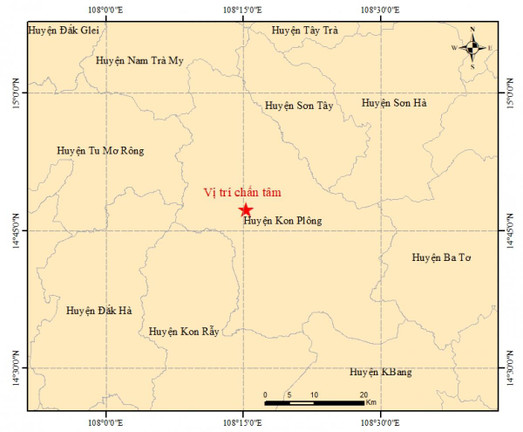 Một trận động đất có độ lớn 3.0 mới xảy ra tại khu vực huyện Kon Plông, tỉnh Kon Tum (tại vị trí có tọa độ 14.789 độ vĩ Bắc, 108.256 độ kinh Đông).