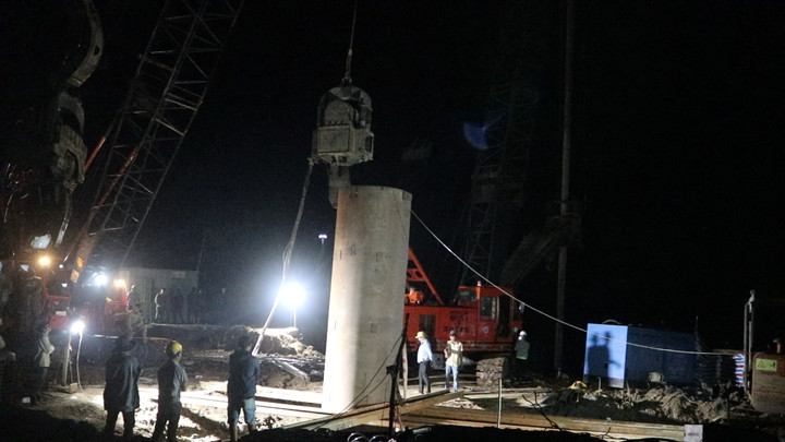 Lực lượng cứu hộ đóng ống thép đường kính 1,5m bên ngoài cọc bê tông nơi bé trai 10 tuổi mắc kẹt, sau đó xử lý phần bùn giữa hai ống, giúp cho việc nhổ trụ.