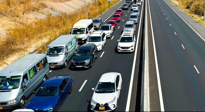 Dòng xe nhích từng mét trên cao tốc Phan Thiết - Dầu Giây chiều mùng 5 Tết