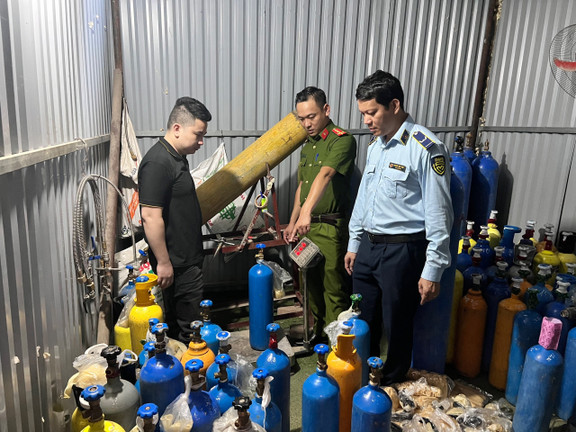 Công an thành phố Hà Nội phát hiện một điểm sang chiết và kinh doanh khí N2O trái phép được ngụy trang, núp bóng tinh vi, thu giữ hơn 100 bình khí N2O các loại.