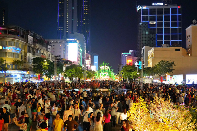 Tối 27/1 (tức 28 Tết), đường hoa Nguyễn Huệ (Quận 1, TP.HCM) chính thức khai mạc, chào đón hàng ngàn người dân và du khách tới khai xuân.