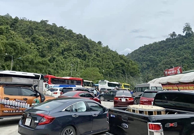 Du khách đổ về Đà Lạt cuối tuần, chốt kiểm soát dịch đèo Chuối ùn ứ. (Ảnh: CTV)