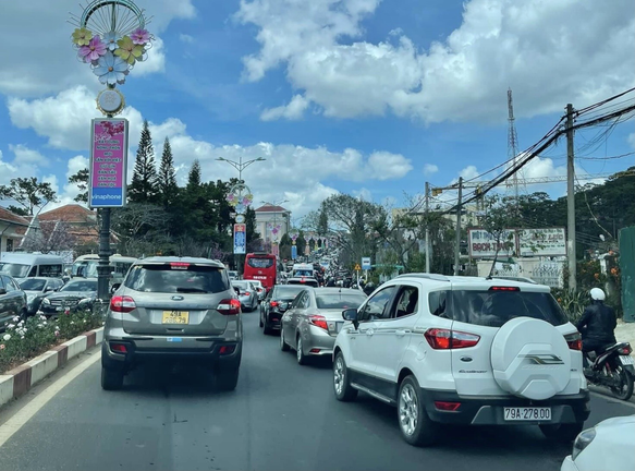 Du khách đổ xô lên Đà Lạt du xuân tăng đột biến khiến cửa ngõ vào thành phố ùn ứ ở nhiều nơi.