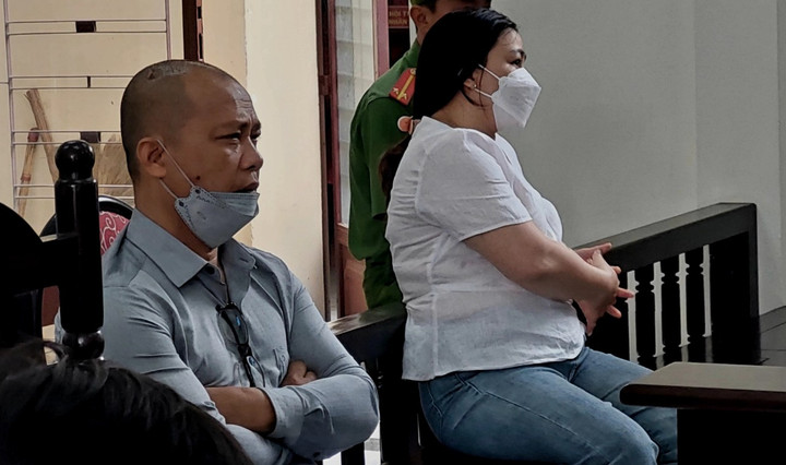Lê Minh Quang và Cao Thị Thu Bích chỉ bị đại diện Viện KSND TP Bảo Lộc đề nghị mức án lần lượt là 18 - 20 và 15 - 18 tháng tù nhưng cho hưởng án treo. (Ảnh: Nguyễn Vương)