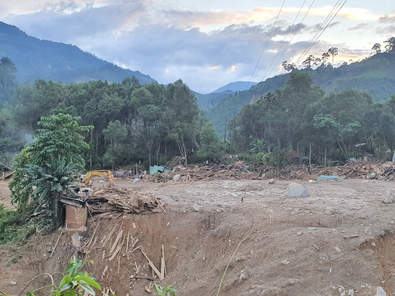 Hiện trường vụ sạt lở kinh hoàng vùi lấp 11 hộ gia đình ở thôn 1 xã Trà Leng.
