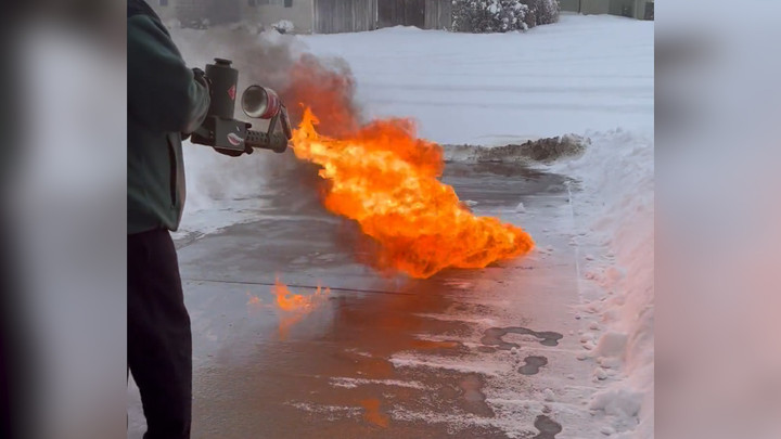 Xung quanh ngôi nhà đều đóng băng, người đàn ông tại Oregon, Mỹ đã dùng súng phun lửa dọn sạch lớp tuyết.