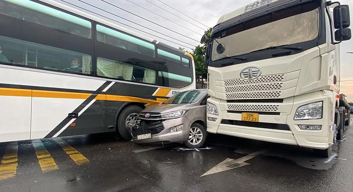 CSGT ra hiệu lệnh, chặn dừng kiểm tra phương tiện nhưng tài xế không chấp hành, tiếp tục tăng ga bỏ chạy. Lực lượng CSGT đã bố trí hợp lý khiến ô tô của đối tượng bị kẹp giữa xe container và xe khách.