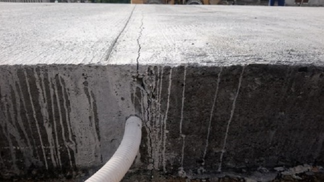 Những vết nứt sâu và dài nằm vắt ngang mặt đường bê tông. (Ảnh: H.O)
