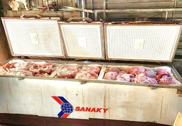 Gần 1 tấn thịt heo nhiễm bệnh được trữ trong nhiều tủ đông của một hộ dân ở xã Hợp Minh (tỉnh Nghệ An).