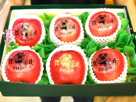 Bên cạnh trái cây nội khắc chữ, gần Tết Nguyên đán Canh Tý 2020, thị trường hoa quả nhập khẩu còn xuất hiện các loại táo Nhật in hình con chuột, in chữ Lộc, Phát độc đáo.
