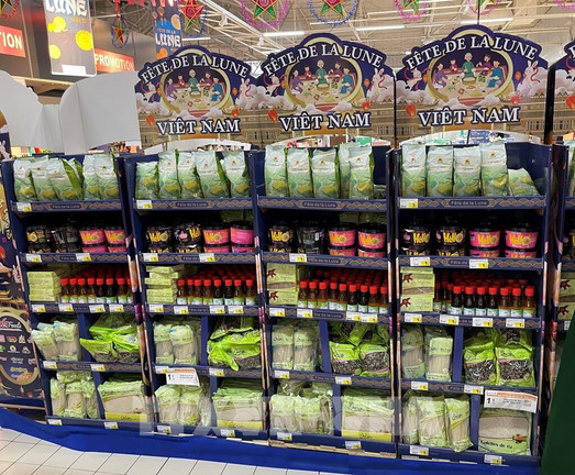 Gạo Việt Nam được bày bán trong siêu thị tại Pháp.