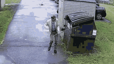 Vừa mở nắp thùng rác, một con gấu hoang liền nhảy ra khiến thầy giáo tá hỏa bỏ chạy thục mạng tại trường tiểu học Zela (Tây Virginia, Mỹ).