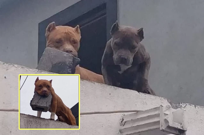 Theo đó, người chủ cố tình thả chú chó lên mái nhà, đồng thời ra lệnh cho nó phải ngậm sẵn một viên gạch để đề phòng có người tới bấm chuông bất chợt. Nhìn qua thôi cũng khiến khá nhiều người phải rùng mình khi viên gạch trông rất nặng nề, nguy hiểm và có phần hơi quá khổ với khẩu hình của chú chó. Và thậm chí, nó gần như có thể rơi bất cứ lúc nào dù rằng ngay cả trong trường hợp không có ai bấm chuông.