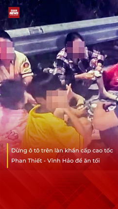 Gia đình dừng ô tô trên làn khẩn cấp cao tốc Phan Thiết - Vĩnh Hảo để ăn tối