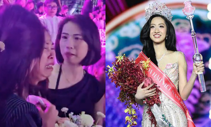 Trước giây phút đăng quang của Hà Trúc Linh, gia đình nàng hậu không thể kìm nén được xúc động dâng trào. Trong đó, mẹ Hà Trúc Linh là người khóc nhiều nhất, đến mức không nói nên lời.