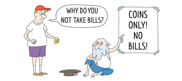 Du khách ghé thăm một ngôi làng trên núi có phong cảnh tuyệt đẹp thường cảm thấy thích thú với tên ngốc trong làng. Bất kỳ ai đưa ra một xu 50 cent sáng bóng và một tờ 5 đô nhàu nát, hắn ta luôn vui vẻ chọn đồng xu. Tờ 5 đô trị giá cao hơn gấp 10 lần, hỏi tại sao hắn không bao giờ chọn nó?