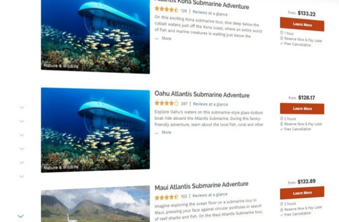 Những tour tham quan bằng tàu lặn được Viator niêm yết thường kéo dài khoảng 1,5 - 2 giờ đồng hồ, thời lượng tương đương một chuyến bay nội địa, cùng giá vé tương đương giá vé máy bay. Với những gói tour kết hợp cả tham quan bằng tàu lặn và ăn tối trên du thuyền, giá mà du khách phải chi trả có thể lên tới 260 USD.