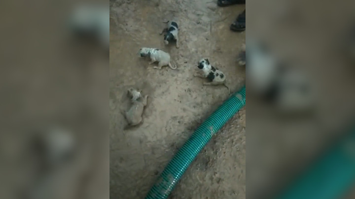 Sau cơn mưa lớn tại Tamil Nadu (Ấn Độ) một đàn chó mắc kẹt trong cống thoát nước, đội cứu hộ đã chui vào trong đường ống giải cứu những chú chó.