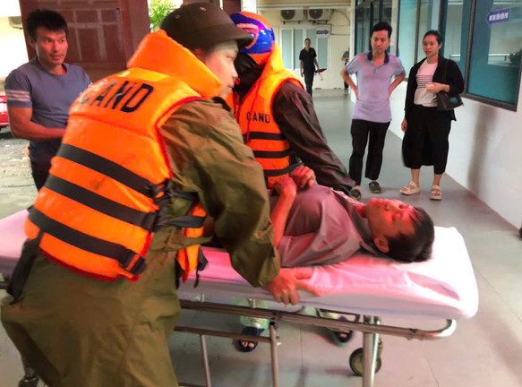 Lúc 15h cùng ngày, tại xã Cẩm Duệ, trong khi cơn bão số 5 đang đổ bộ vào đất liền, gió giật dữ dội, mưa xối xả, ông Bùi Đức Vịnh (SN 1964, trú thôn Mỹ Đông) bị ngã gãy xương, cần được đưa đi cấp cứu khẩn cấp.