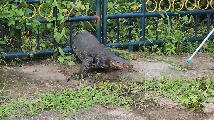 Đội cứu hộ mất 20 phút để giải cứu thằn lằn dài gần 2m bị mắc kẹt khi cố chui qua cánh cổng thép tại Nakhon Nayok, Thái Lan.