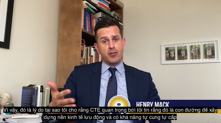 Ông Henry chia sẻ: "Tại Mỹ, chúng tôi đánh giá cao tầm quan trọng của chương trình Giáo dục nghề nghiệp và kỹ thuật (Career and Technical Education - CTE) - chương trình dạy các kỹ năng nghề nghiệp cụ thể cho học sinh ở các cơ sở giáo dục trung học cơ sở, trung học phổ thông và sau trung học cơ sở".