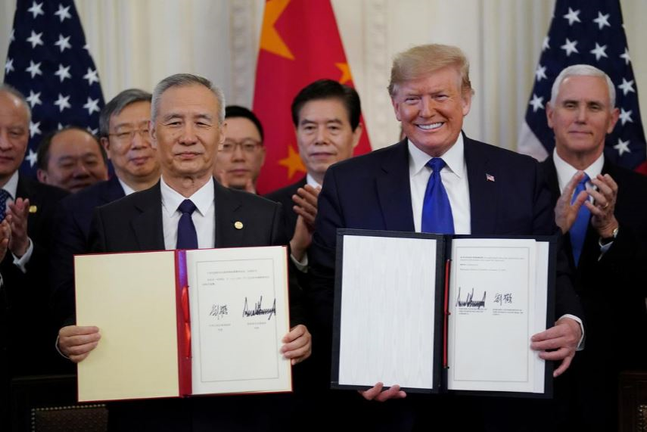 Mỹ - Trung ký thỏa thuận thương mại giai đoạn 1. (Ảnh: Reuters)