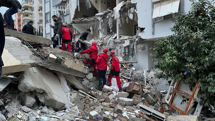 Các nhân viên cứu hộ tìm kiếm người sống sót trong đống đổ nát sau hai trận động đất ở Thổ Nhĩ Kỳ năm 2023 (Nguồn: Getty Images)