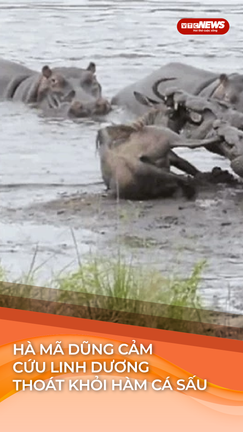 Một câu chuyện hy hữu đã xảy ra, linh dương đầu bò thoát khỏi móng vuốt tử thần nhờ đàn hà mã hợp lực đánh đuổi cá sấu.