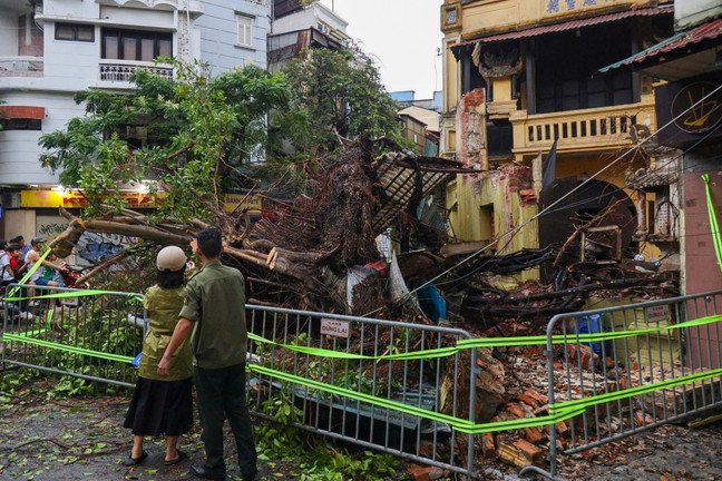 Theo người dân có mặt tại hiện trường, khoảng 15h cùng ngày, trước khu vực ngã tư Hàng Cá - Chả Cá, cây xanh cổ thụ bật gốc khiến nhiều dân trong khu phố hoảng hốt.